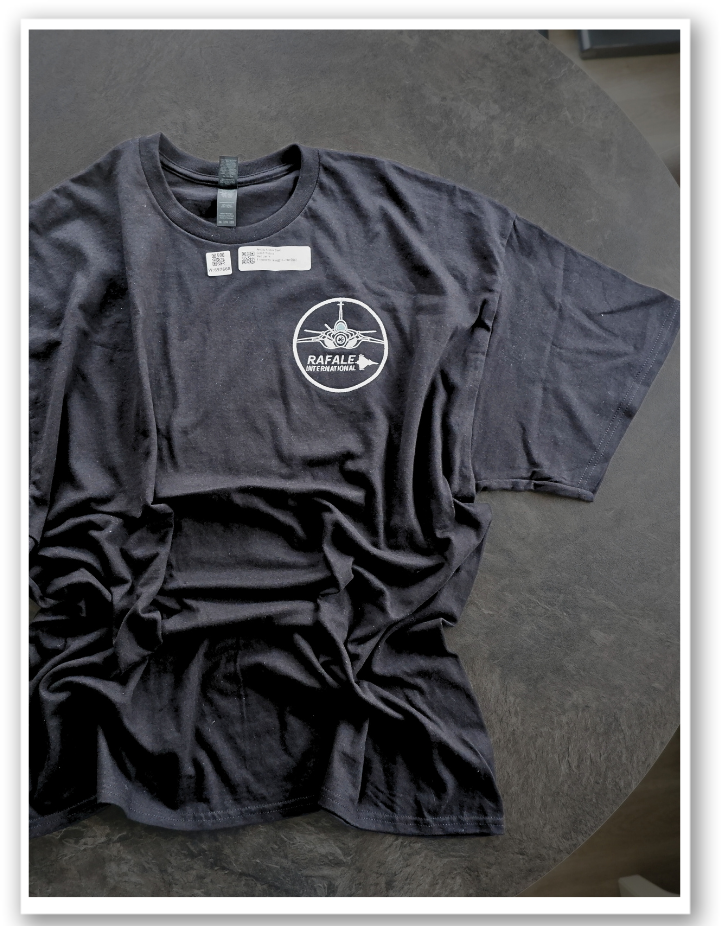 Engineered Precision: Features a detailed embroidered Dassault Rafale chest badge and a technical-style back print showcasing multi-angle aircraft views and key performance specs.